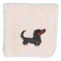 シルク混の今治タオルにダックスフンド(ブラックタン)の刺繍のされたダックスファンシャーにはたまらない1枚です。